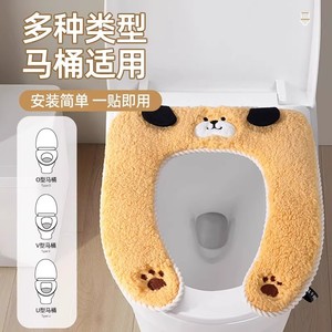 韩式黑耳狗卡通马桶垫加厚粘贴式通用马桶套防水坐便垫简约坐便套