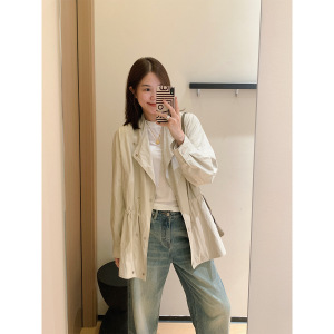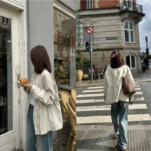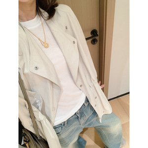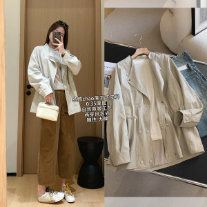 北欧纸皮皮衣!早秋私服chao薄皱感皮衣外套翻领收腰夹克