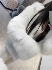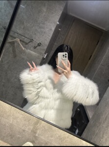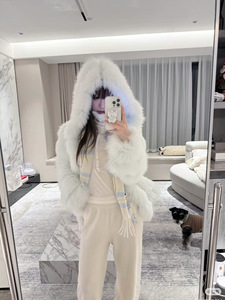 气泡薄荷绿夫人不爱荔枝皮同款狐狸毛车条连帽皮草外套