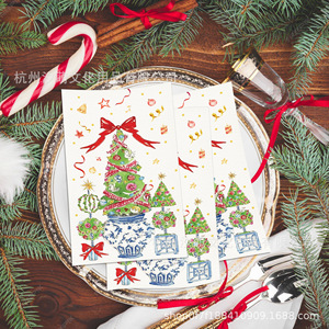 CZJ186 礼物圣诞树长纸巾 节日派对布置餐巾 圣诞装饰一次性纸巾