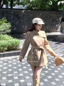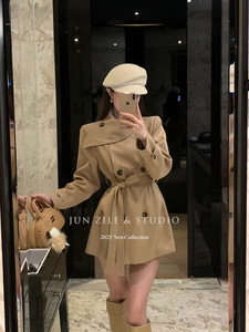 风衣外套女小个子秋装法式英伦风双排扣围脖领设计感收腰短款大衣