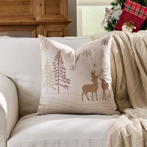 圣诞树+二个鹿【米色】抱枕45*45cm