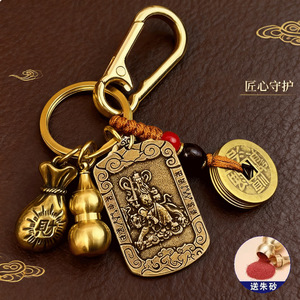 【店长推荐】新款武财神赵公明令牌黄铜葫芦创意汽车钥匙扣小挂件