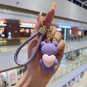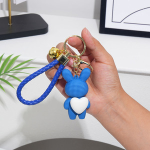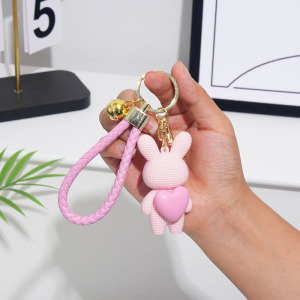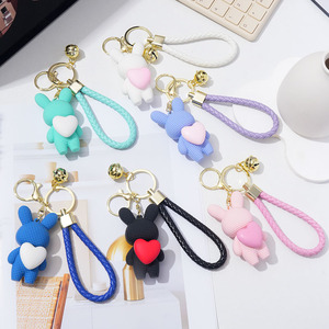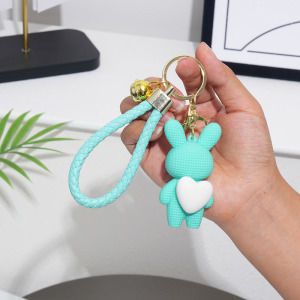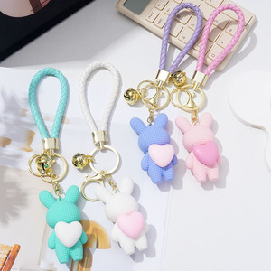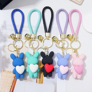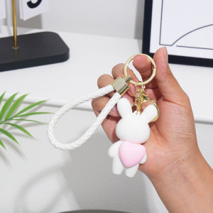 卡通爱心兔钥匙扣情侣抱心公仔编织钥匙链汽车包包挂件娃娃机礼品