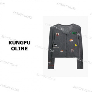 韩版时尚高级感卡通印花长袖针织衫女秋季2025新款小个子修身上衣