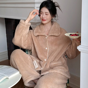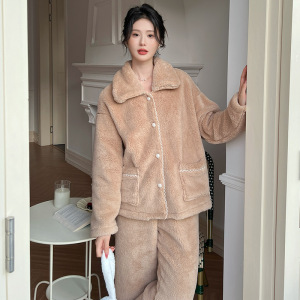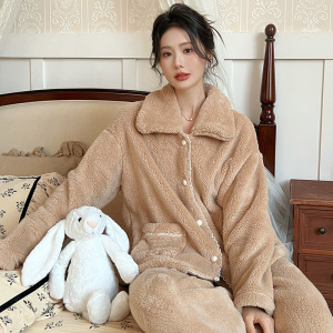 法式睡衣女冬新款甜美风长袖套装宽松特厚双面绒家居服可外穿睡衣