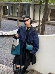 跨境麂皮绒拼接女大容量2025新款秋冬季复古单肩子母包通勤水桶包