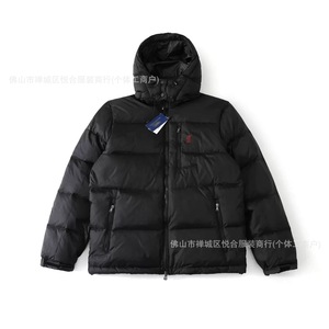 跨境高版拉夫小马刺绣加厚防风防水保暖羽绒男女款可拆卸连帽外套