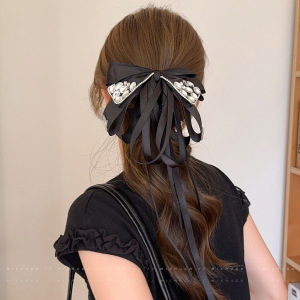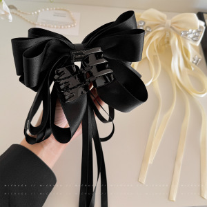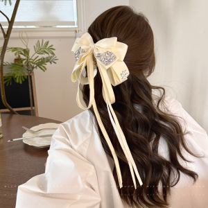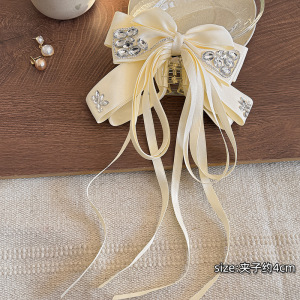 韩系超仙水钻蝴蝶结飘带发夹女半扎发公主头抓夹鲨鱼夹子发卡发饰
