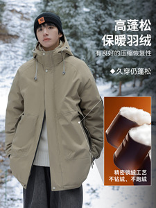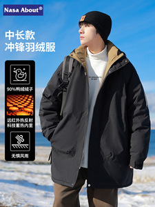 NASA冬季2025新款连帽工装中长款羽绒服户外三防冲锋鸭绒棉服外套