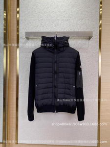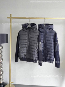 欧洲站新款M家针织拼接休闲羽绒服男白鸭绒保暖情侣修身羽绒外套