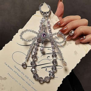 轻奢高级感四叶草水晶手机链条串珠蝴蝶结吊坠手提链挂饰手机挂绳