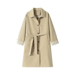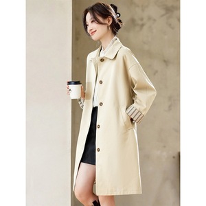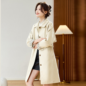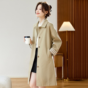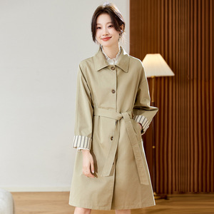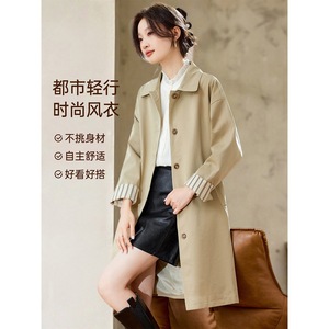 2025新款秋冬韩系女装腰带翻领上衣宽松中长款纯色风衣女洋气外套