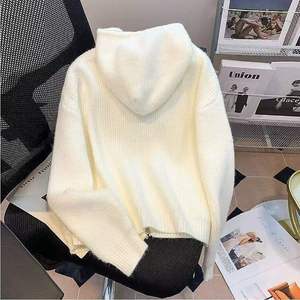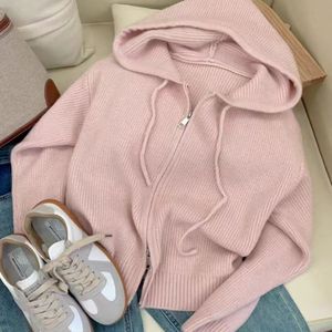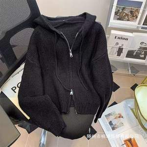 慵懒风拉链连帽针织衫毛衣外套女秋冬新款新品感宽松开衫上衣