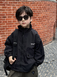 男童韩版连帽拉链冲锋衣春秋装2025新款运动儿童外套休闲户外