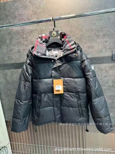 跨境欧洲站潮牌秋冬经典款可拆卸衣袖格纹连帽羽绒服加厚保暖外套