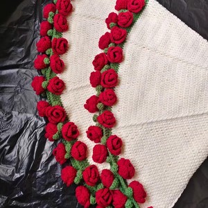 白色玫瑰花毯子成品直径70厘米50朵玫瑰花现货成品
