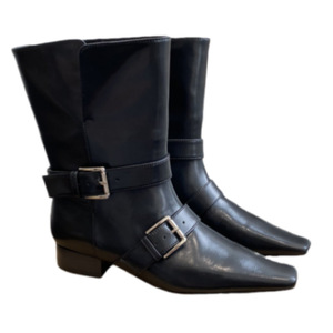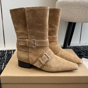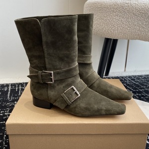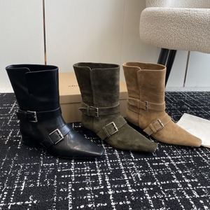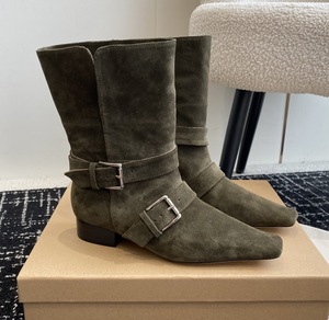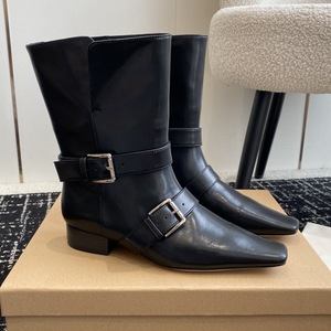 莞版秋冬系列英伦风西部牛仔小方头双皮带扣粗跟短靴中筒子女金属