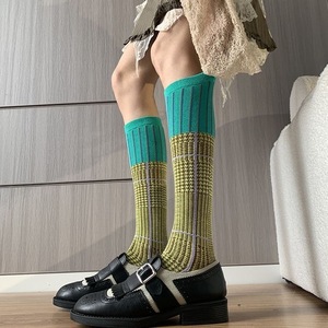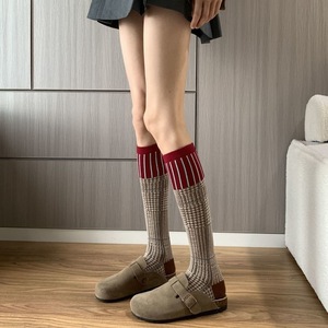 新复古主义高智巴恩风穿搭及膝袜子女拼色细格纹千鸟格防寒小腿袜