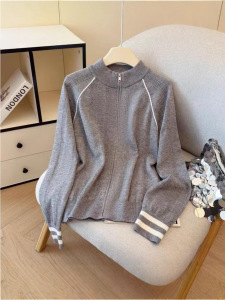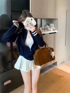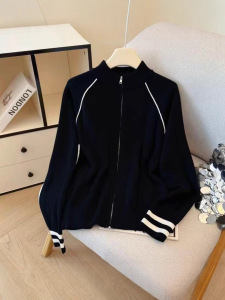 学院风立领撞色长袖针织衫女2025秋季新款设计感显瘦拉链甜辣外套