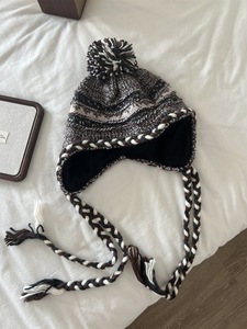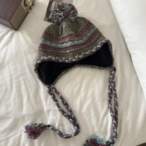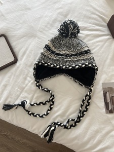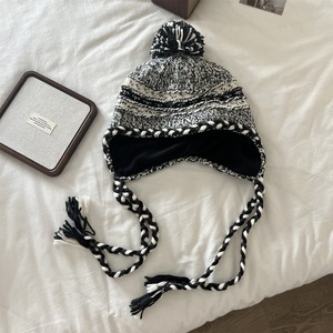 费尔岛风古着感手工辫子毛线帽女秋冬加绒保暖护耳毛球针织雷锋帽