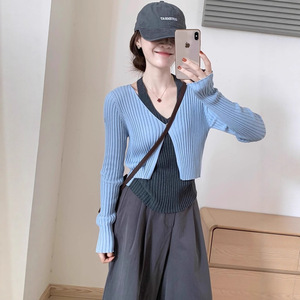 设计感小众挂脖开衫假两件2025秋季新款韩版免穿搭叠穿上衣长袖女