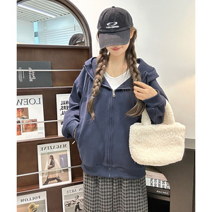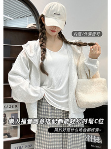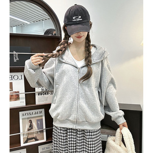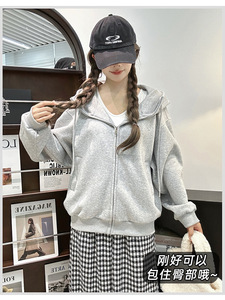 灰色连帽卫衣女春秋季2025新款宽松小个子慵懒风早秋外套开衫上衣