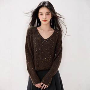 铭海2025设计感v领重工细闪亮片毛衣女秋洋气时髦百搭宽松针织衫