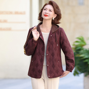 中年妈妈装秋春季时尚洋气连帽休闲外套中老年女装外时尚夹克上衣