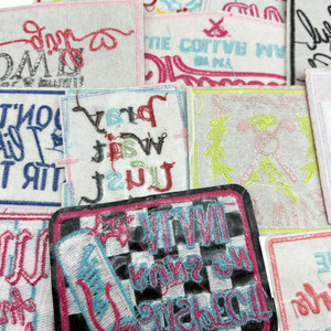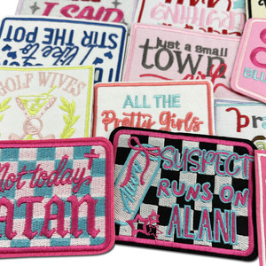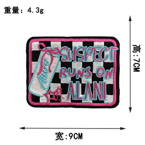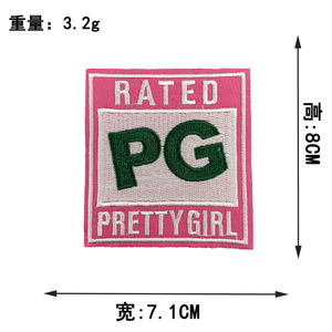 跨境热销粉色英文字母方块刺绣电脑绣花布标箱包帽子补丁贴熨烫款