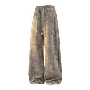 新品裤子男款秋季美式扎染做旧复古直筒男简约百搭休闲长裤脏脏裤