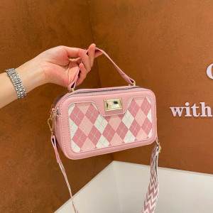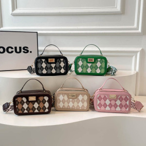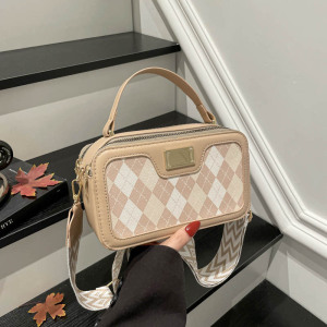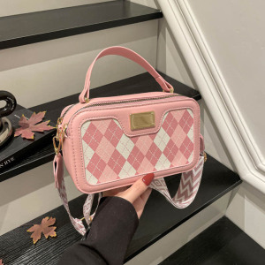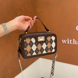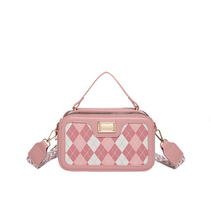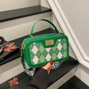 今年流行菱格女士2025秋季新款时尚质感简约宽带手提斜挎小方包