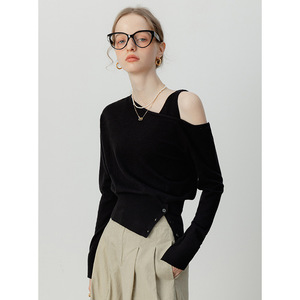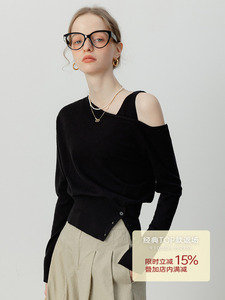 EGGKA设计感时尚针织衫春秋季韩系温柔气质别致独特斜肩上衣女