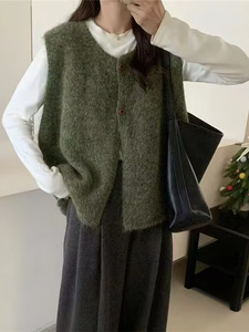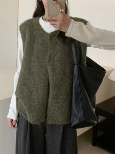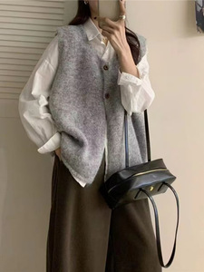 无袖毛衣马甲女春秋季韩版复古百搭简约风新款宽松叠穿针织背心女