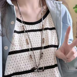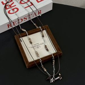 酷潮辣妹字母腊肠狗双层珍珠拼接项链女韩版冷淡风小众个性毛衣链