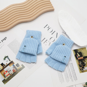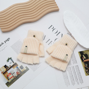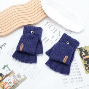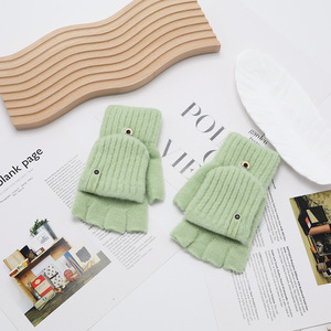 毛线针织翻盖手套男女冬季露指学生写字打字骑行触屏保暖半指漏指