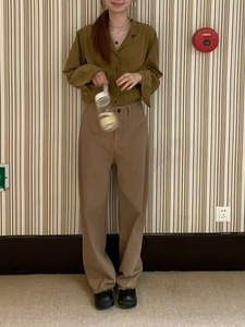 复古黄灯芯绒衬衫秋季百搭戗驳领竖坑条长袖上衣外套