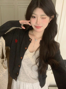 实拍~早秋甜美爱心提花毛衣开衫+蕾丝花边波点半身裙套装女89192