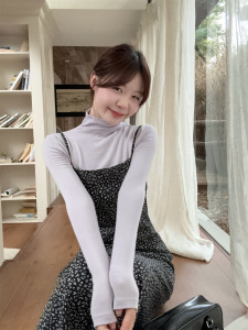 实拍~早秋款纯欲高领修身正肩长袖上衣+碎花吊带连衣裙长裙套装女