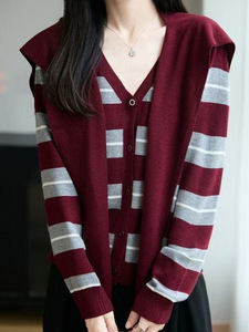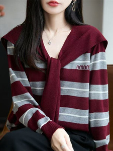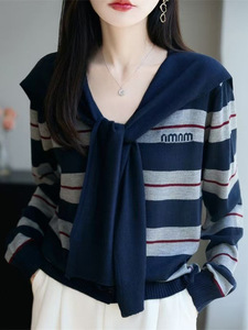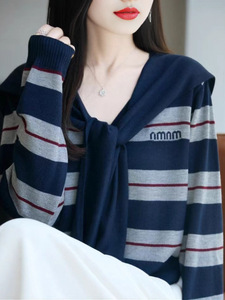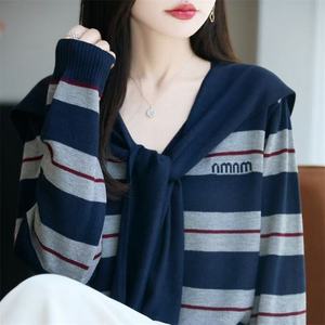 韩版秋冬高端毛衣混纺刺绣条纹披肩针织开衫慵懒小众2025减龄上衣