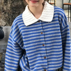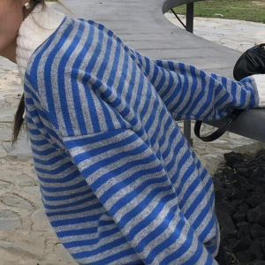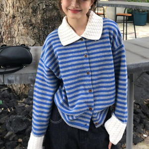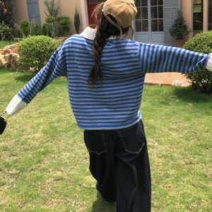 2025秋季韩系氛围感穿搭慵懒风超好看撞色条纹翻领软糯针织毛衣女