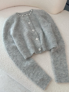 ORG白月光 白色灰色小香精致少女正肩气质百搭通勤开衫上衣外套
