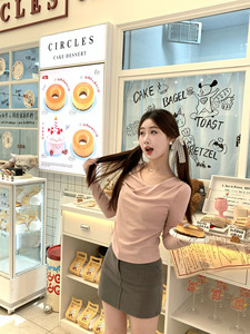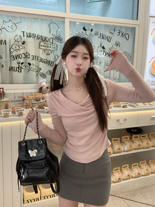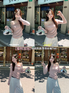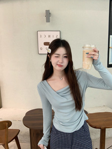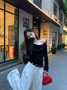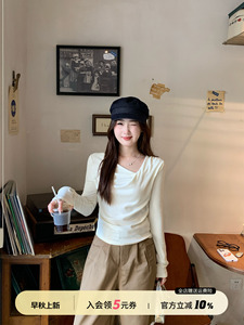 苏三三 早秋韩系穿搭上衣荡领设计感小众巨好看漂亮白色长袖t恤