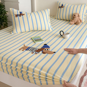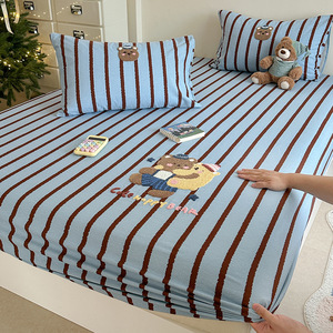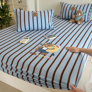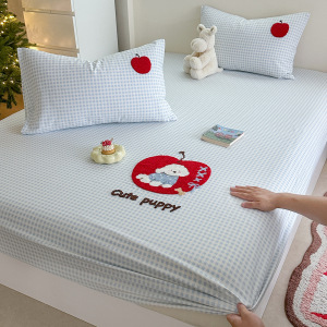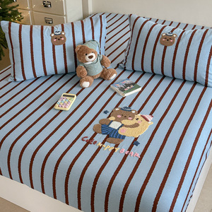 卡通毛巾绣纯棉磨毛床笠三件套秋冬加厚儿童单人床罩床垫套保护罩