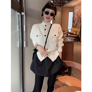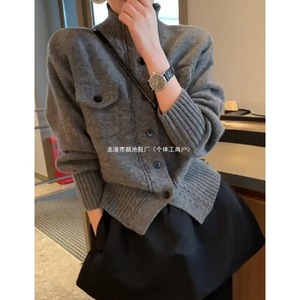 欧货设计感加厚针织毛衣外套女2025秋冬款修身显瘦针织衫短款开衫