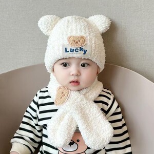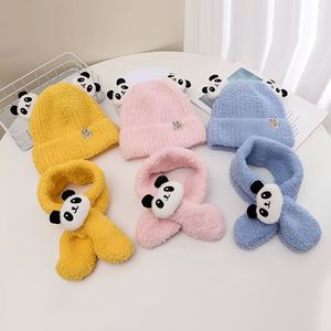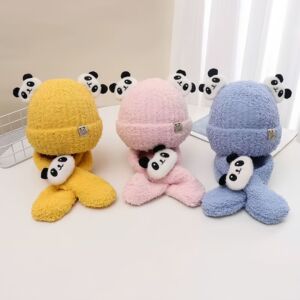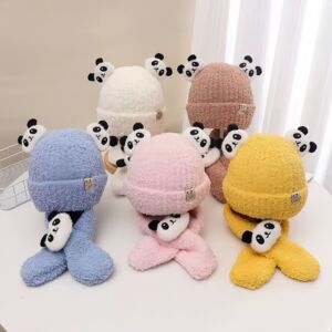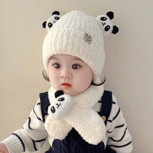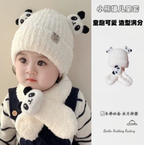 宝宝帽子围巾秋冬季可爱儿童针织毛线帽男童女童熊猫护耳帽子套装