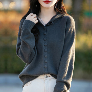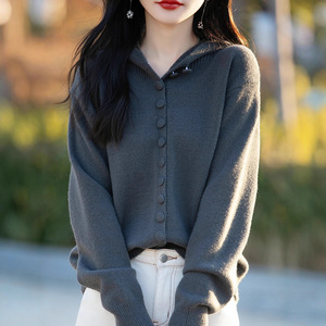 大码女装秋季新款2025年小众设计感百搭纯色时尚连帽针织开衫上衣
