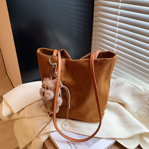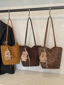 老钱风磨砂豹纹包包女大容量慵懒松弛感托特包麂皮菜篮子包水桶包