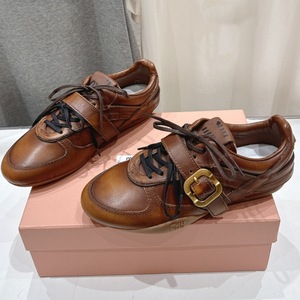 莞版高定春夏新款真皮德训鞋进口牛皮金属扣系带平底休闲运动鞋