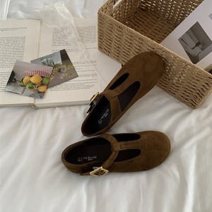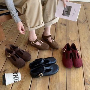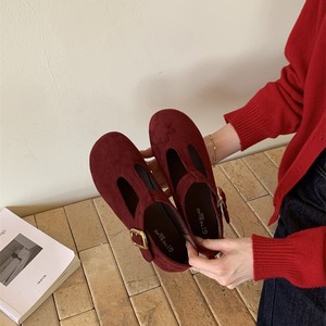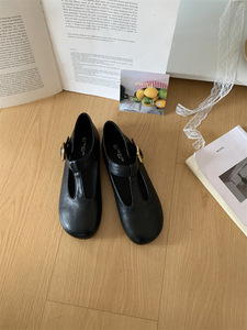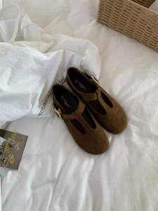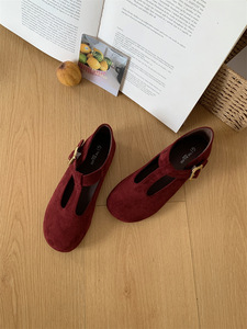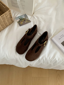 THEBULAGE 日常百搭复古风T字扣带单鞋2025秋季平底绒面玛丽珍鞋